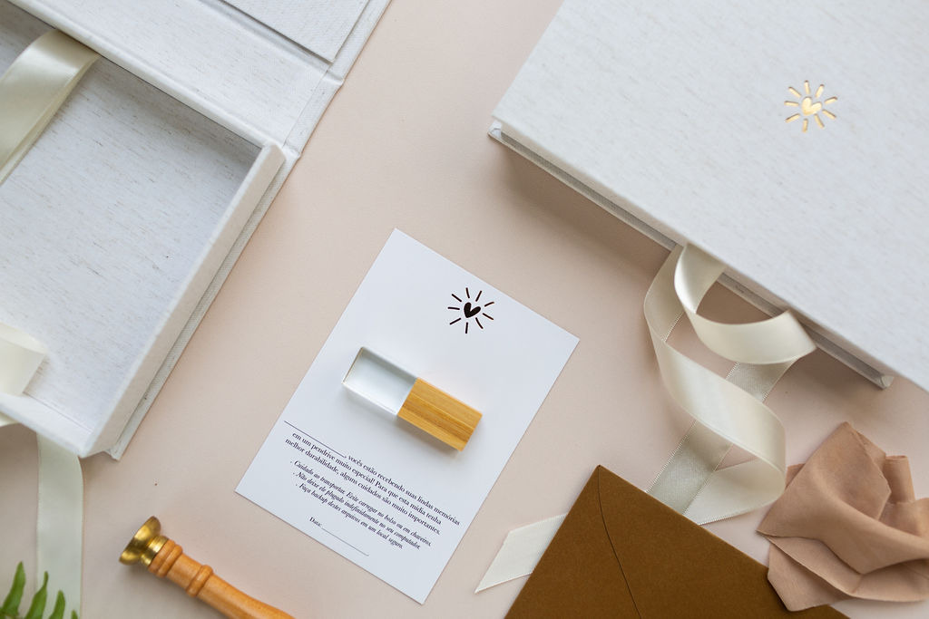 Não é simplesmente uma caixa qualquer, o material físico é a forma mais linda de você eternizar suas fotografias, de deixar as memórias afetivas ativas, ele é composto por caixa 10x15 feita a mão sendo um produto artesanal, impressões no tamanho 10x15 de acordo com cada pacote, e pen drive.